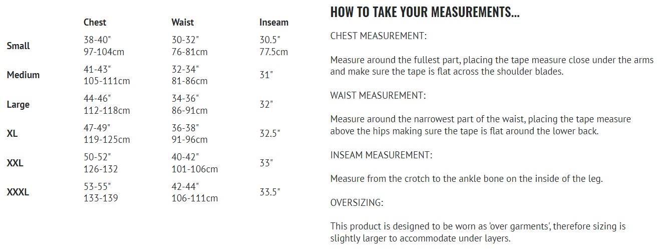 A heavy-weight 3pce winter suit with fully tapes seams on the jacket and bib & brace with a Hydrostatic Head of 5000mm. Compromised of a jacket, fleece and bib & brace.