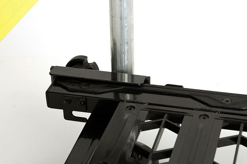 PRODUCT OVERVIEW Lightweight aluminium H-frame Removable padded strap supplied Contrasting lime frame and black footplate New non-scratch sliding footplate locking mechanism 6 x 25mm tele-adjustable round legs Swivel mud feet for extra stability on uneven ground. All legs include thread leg caps Built using the popular Matrix drawer units Supplied with: 1 x Deep Drawer Unit, 1 x 90mm Deep Tray Unit Snag-Free fitting throughout Padded seat with built-in spirit level